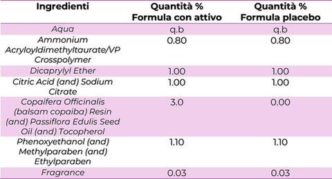 Lo studio clinico è stato condotto su un panel di 21 donne (27-65 anni) con pelle sensibile ed eritema. Il protocollo ha previsto l’applicazione del prodotto al 3% su metà viso, mentre sull’altra metà è stato applicato un placebo, per un periodo di 28 giorni. Le valutazioni sono state effettuate ai tempi T0, 7, 14 e 28 giorni, analizzando i seguenti parametri: livelli di IL-6 (analisi biochimica), rossore cutaneo (misurazione strumentale), composizione del microbiota cutaneo (analisi metagenomica 16S rRNA) e sensibilità cutanea (test di percezione soggettiva).