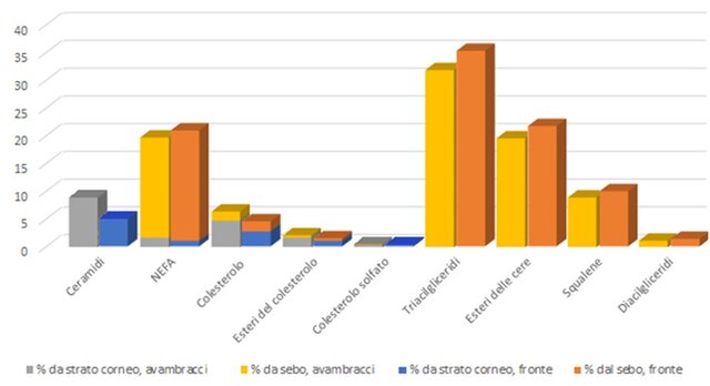 Tabella 1. Variazione dei lipidi superficiali in base alle specifiche condizioni cutanee analizzate