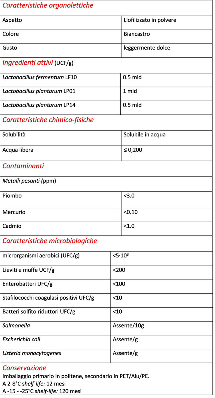 Tabella 1. Caratteristiche tecniche di amitaBiome® Aura
